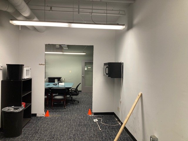 Demo of the south wall in our current entrance area and walls in the former Supply Chain office are the focus of this project. This is very physical work. Please make sure to wear appropriate clothing and close toed shoes.